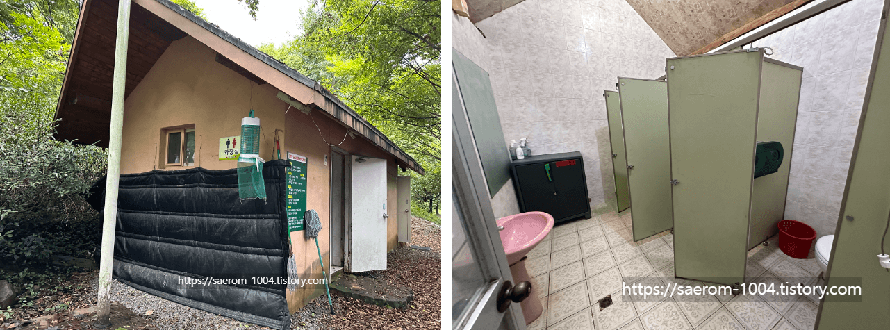아무도 없어서 조금 무서웠지만.. 텐트 피칭하느라 흘린 땀으로 찝찝함이 더 컸기에 용감하게 씻고 나왔던 곳.