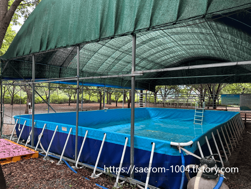 그 옆으로 수영장이 마련되어 있었습니다. 수영장은 이미 기간이 휴가철이 끝난 시점이라 운영되지 않았는데요.